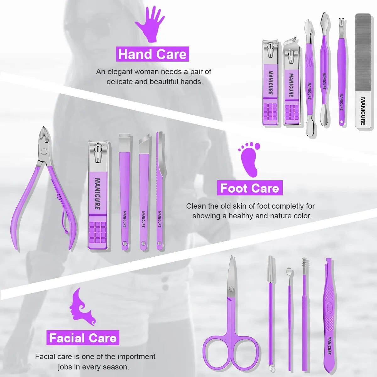 16 In 1 Stainless Steel Manicure Kit | Grooming Household Facial Nail Clipper Kit With Travel Case | Professional Manicure/Pedicure Kit | Hand